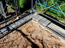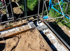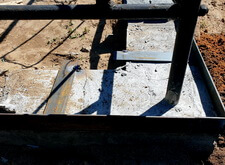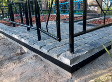 Ранее возведённый деревянный каркас залили бетоном. Выждав достаточное время для того, чтобы раствор окончательно схватился, мы принялись сваривать металлический периметр, внутрь которого и будет уложена брусчатка.