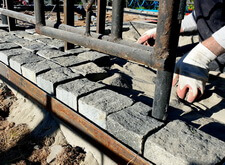 Под опоры ограждения в брусчатке были вырезаны соответствующие отверстия. Таким образом мы обошлись без ненужных сдвигов и неровных линий, получившийся периметр смотрелся одним целым.